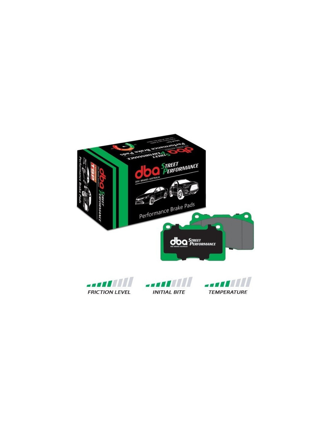 Klocki hamulcowe DBA Street Performance (SP) zostały zaprojektowane z myślą o kierowcach poszukujących lepszej skuteczności hamowania w porównaniu z seryjnymi klockami. Opracowany w celu zapewnienia skutecznej reakcji na tarcie przy hamowaniu oraz jednoczesnej minimalizacji eksploatacji i pylenia.